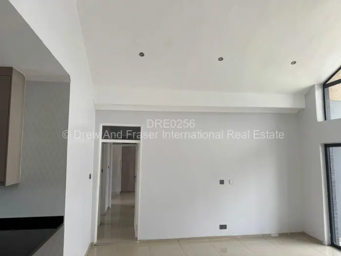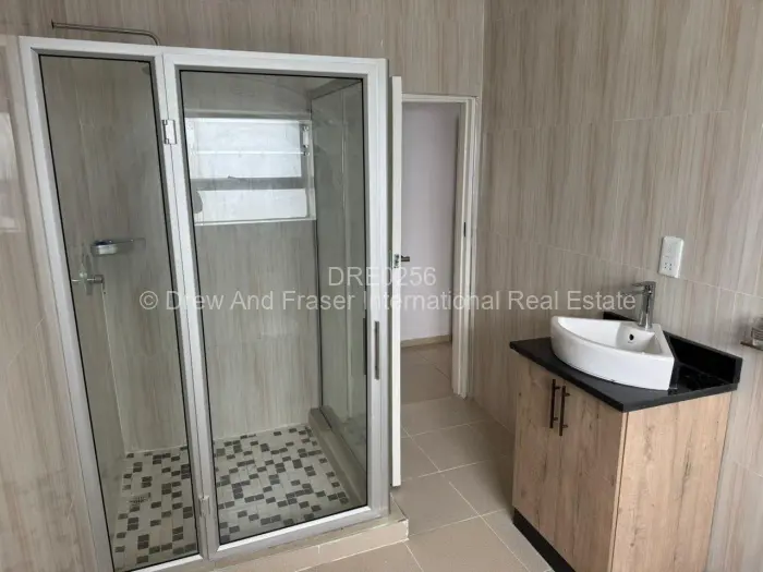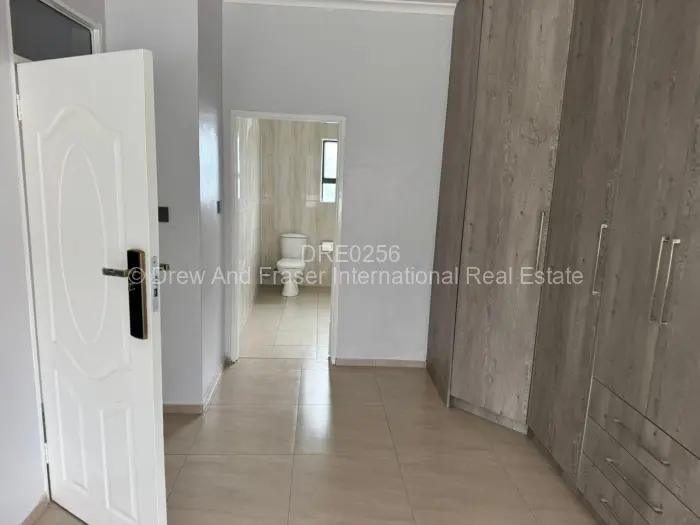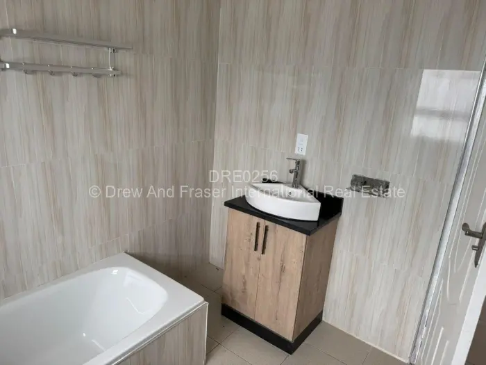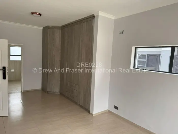 Light-filled modern 3-bedroom, 2-bath garden flat in the secure Old Windsor development, Ruwa. Built in a gated community of only 10 units of stylish single-level living, this unit offers an open-plan lounge and dining area with high ceilings and large sliding doors that open onto a private paved patio and small garden perfect for outdoor relaxation. The contemporary kitchen features fitted cabinetry, granite stone countertops, an integrated oven and hob, and ample workspace. Bedrooms are bright with built-in wardrobes and clean neutral finishes; the main bathroom includes a bathtub while the ensuite offers a separate shower and modern tiling. The complex presents neat landscaping, wide paved driveways and individual parking space for secure parking. A reliable borehole provides additional water security. Ideal for families or professionals seeking low-maintenance, modern living in Mashonaland East move in and enjoy practical comfort and tasteful finishes.
